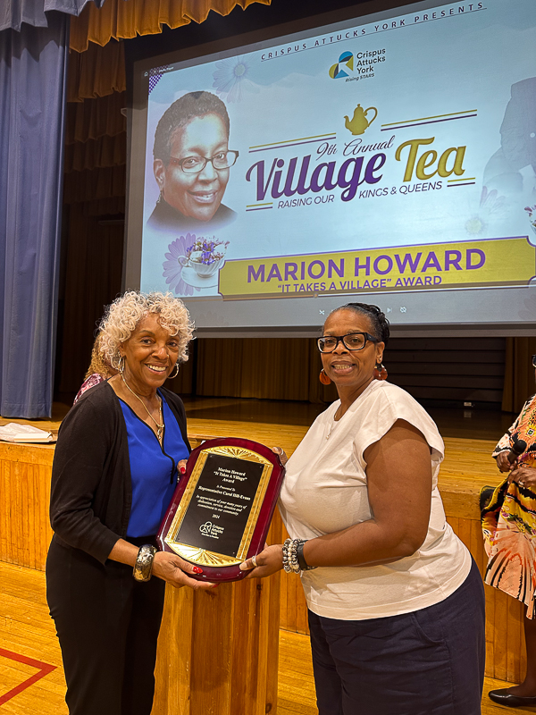 – PA Representative Carol Hill Evans a CA Kid and long time supporter of CAY when receiving her award said, ” Thank you kindly and thank you family of Marion Howard, Lady’s and Gentlemen I stand before you humbled and honored to accept this meaningful award. This moment is not just a personal milestone, it’s a result of years of hard work, persistent dedication, and a steady belief in the pursuit of public service. I’m here because of the countless individuals who have shaped my journey members who guided me, the colleagues who supported me, and the family that stood by me every step of the way. This award is a testament to the power of one person’s passion and perseverance that person. That person is Marion Howard. It symbolizes not only what one can achieve with determination, also what we can accomplish together as a community and as a village. As I accept this honor and I’ve been waiting for this! I’m reminded of the early days of wondering how I can serve my village in a way that would not only make them proud but more importantly, how I can make their lives better. The setbacks that seemed instrumental and the victories that were all the sweeter for their difficulty exemplified the spirit of Marion Howard, her mission, and her vision for her village. To all individuals out there who aspire to make a public servant in any capacity let this be a message of hop and inspiration your dreams are valid. Henry David reminds us to go confidently in the direction of your dreams, your hard work will pay off and your journey though it’s your unique journey is a part of the larger story of human endeavor and resilience. Thank you for this incredible honor. May we all continue to strive for excellence in all that we continue to do for our villages. Thank you!!”