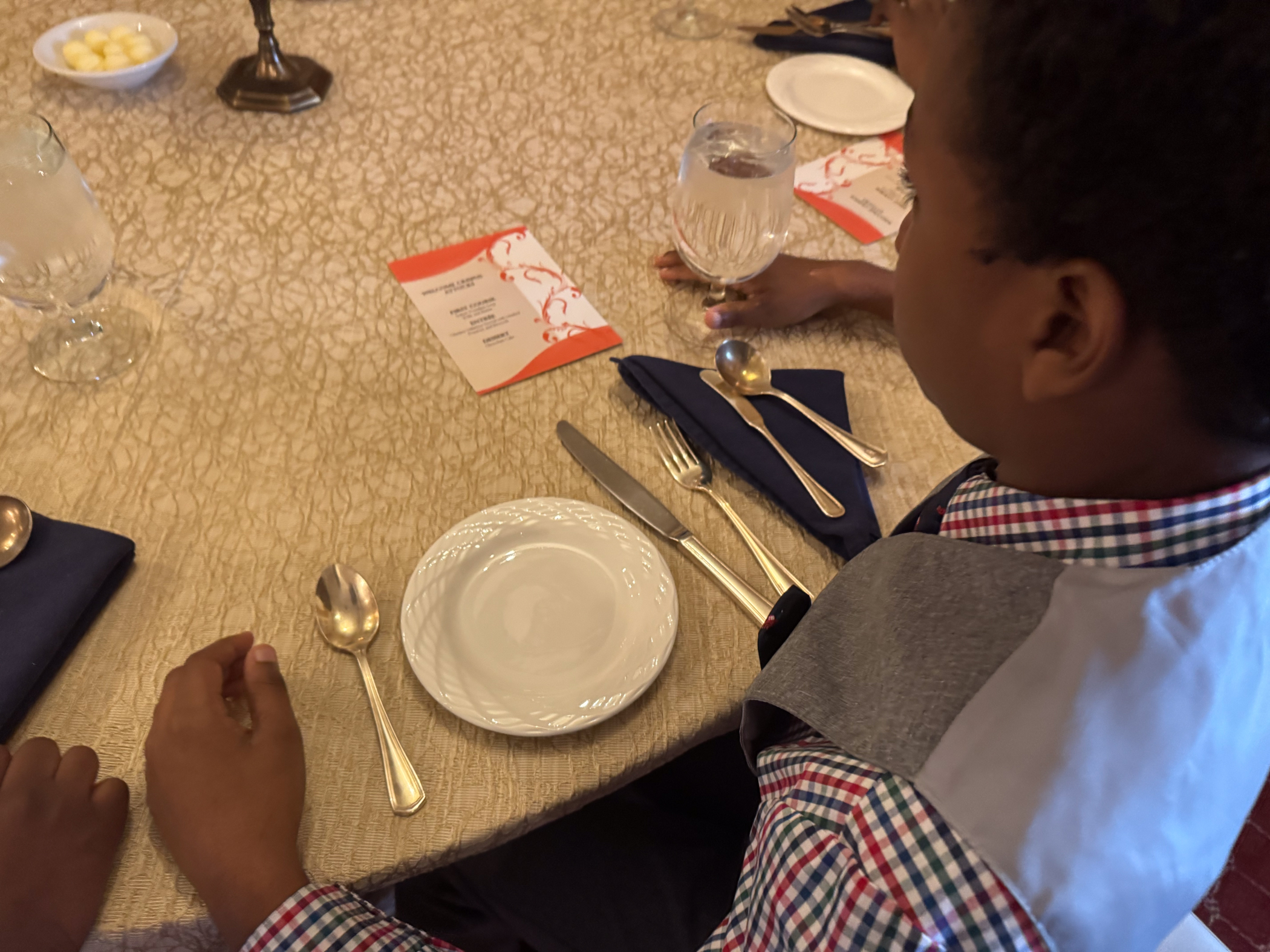 Throughout the meal, Ms. Seitz guided participants on everything from posture and napkin placement to conversation etiquette, fork and knife handling, and how to navigate a formal meal with confidence.